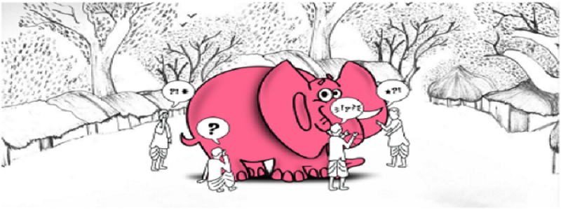 The Story of ‘Blind Men and the Elephant’ originated in the Indian subcontinent. According to folklore a group of blind men never having seen or known an elephant, set out to learn what it’s like! Each blind man touches a part of the elephant and shares with excitement. One touches the back of the elephant …